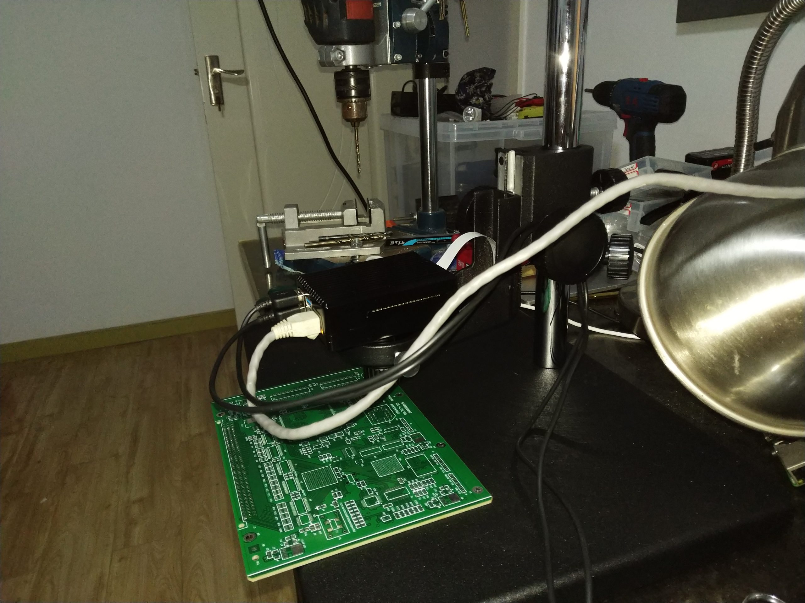 方案:1、python+opencv+tesseract实现OCR,如果开源模型识别率不可接受,则需要训练识别模型2、通过http将识别结果发送到web 需求: 1、识别pcb板上特定的丝印代码 2、丝印代码位置不确定,字体字号均不统一,可确定的是只有大写英文字母和数字 3、pcb板尺寸不超过300mm*300mm 4、通过定义url接口写数据库 5、识别正确率90%以上 结构设计: 由于字号有大有小,对于字号很小的需要用长焦镜头微距拍摄,对于字号很大的,则需要远距离拍摄,因此摄像头在竖直方向需要变化。为了适应不同大小的电路板和不同位置的丝印码,摄像头也应该在水平方向上可以移动。 原型 尝试了一下默认训练模型,识别率不高,可能是因为应用场景中pcb印刷没有统一标准,每种电路板上的丝印字体字号都不同导致的。解决办法只能是训练一个适用于这个应用场景的模型。2020.6.15.更新对输入图片进行预处理(高斯模糊->灰度->二值化),在英文和数字上识别效果非常好,但是数码管字体(我给起的名字)完全无法识别思路:1、针对数码管字体进行训练,然后将两个训练模型叠加使用(-l eng+dit)2、尝试一下卷积神经网络的训练 2020.6.16. 基本功能实现,还有很大优化空间 测试工具python源码 2020.6.29. http提交功能实现,并搭建运行环境(nginx+php)模拟生产环境进行集成测试。 2020.7.5. 完成 2020.11.10. 版本更新 用PyQt5完成界面和人机交互